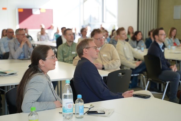 Ein wichtiger Programmpunkt war die Vorstellung zentraler Ergebnisse aus dem EU-Projekt ESG4SMEs durch Prof. Dr. Thorsten Kliewe. Ziel des Projekts ist es, kleine und mittlere Unternehmen in Europa dabei zu unterstützen, Umwelt-, Sozial- und Governance-Prinzipien in ihre tägliche Arbeit zu integrieren. Im Rahmen des Projekts wurden unter anderem ein Online-Weiterbildungskurs für Nachhaltigkeitsverantwortliche sowie eine App in Form eines „Simulation Games“ entwickelt. In einer virtuellen Unternehmensumgebung sollen Nutzerinnen und Nutzer ESG-Prinzipien anwenden, Entscheidungen auf Basis von ESG-Daten treffen und deren Auswirkungen auf die Unternehmensleistung nachvollziehen können. Beide Angebote stehen Unternehmen ab Projektende im Mai 2026 kostenfrei zur Verfügung.