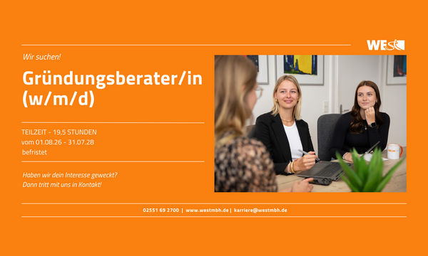 Als Wirtschaftsförderungsgesellschaft des Kreises Steinfurt unterstützt die WESt Unternehmen in ihrer Entwicklung, begleitet Neuansiedlungen und fördert Gründungen durch umfassende Beratungs- und Projektangebote. Mit der ausgeschriebenen Position wird das Beratungsangebot im Bereich Existenzgründung weiter gestärkt.